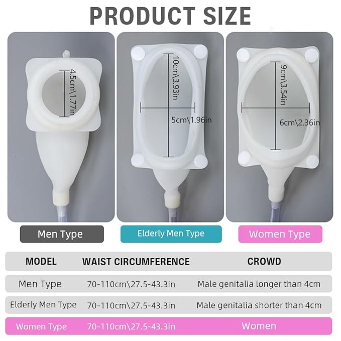 WIDELY APPLICABLE: This Women's urine collection bag is suitable for a wide range of situations, whether it is the elderly, bladder leakage, incontinence patients, or people with mobility problems all of them can benefit from it. It offers a convenient and hygienic solution for those who have to spend long hours in bed or are frequently on the go.