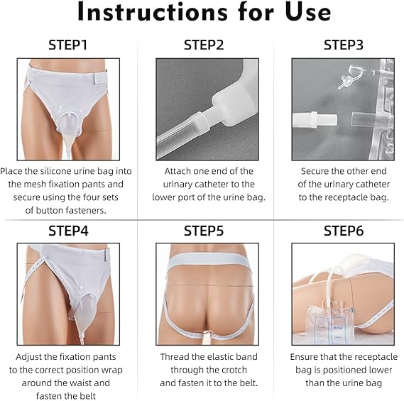 Comfortable Design: Featuring breathable cotton fixation pants, our urinal ensures secure and allergy-resistant wear. The high elasticity waistband allows easy application by attaching the belt and fastening the leg buttons
