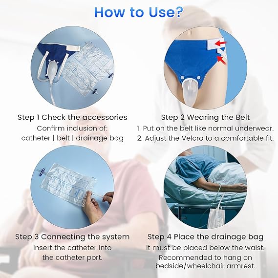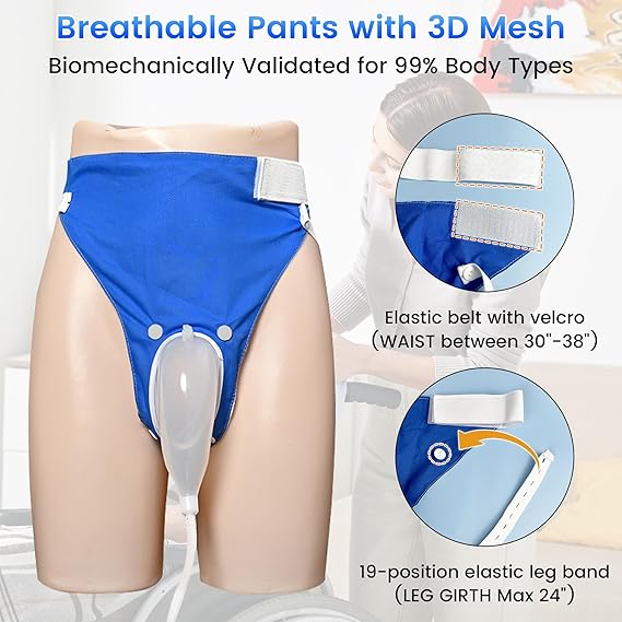 Well-designed anti-reflux soft side, male external is easy to carry and reuse, wearable urine bag is easy to clean, and it also ensures no leakage of urine when you are lying on your side.